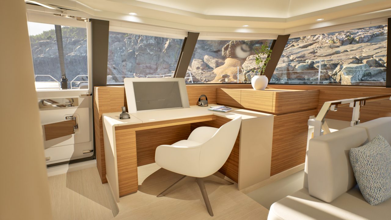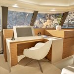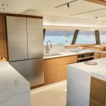 The FPY 70S catamaran layout is expertly crafted with an uninterrupted flow of movement between the interior and exterior spaces. Inside, the Fountaine Pajot FPY 70S continues its focus on light, space, and comfort. Panoramic windows fill the salon with natural light, creating an inviting environment, connected to the aft and forward cockpit areas. The Maestro suite, a 25 m² private retreat, features direct access to the aft terrace and an en-suite bathroom, while guest cabins are generous and offer refined finishes and abundant natural light. Crew spaces are thoughtfully integrated as well, with 34 m² dedicated to service, including a captain’s cabin with en-suite facilities. Materials, colors, and textures are customizable, allowing owners to create an interior that reflects their personal taste. Every corner of the interior has been designed for social interaction and tranquility, and ensures a comfortable experience that both guests and crew will enjoy.
