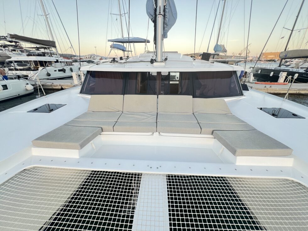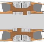 Powered by upgraded twin Volvo Penta 50hp engines, she delivers strong performance and manoeuvrability. Her unique selling features include solar panels, upgraded engines, teak cockpit table extension, upgrade on materials for cockpit, outdoor cushions and Nature PVC indoor upholstery, foredeck cushions, electric davit winch, bow sprit and gear for Code “0” gear for gennaker, additional AGM 150A battery, one electric winch for the mainsail and numerous upgrades above the standard charter specification.