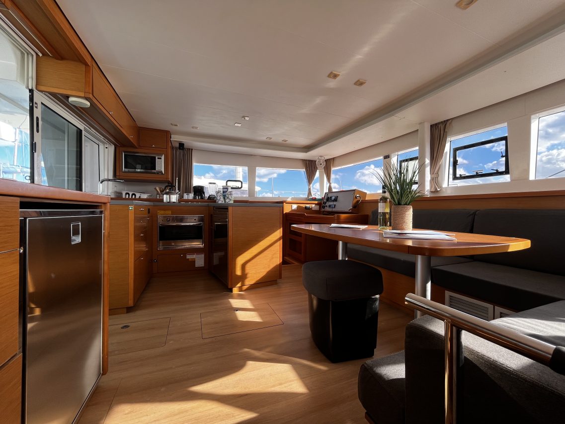 This Lagoon 450F combines spacious, comfortable cruising with practical handling for family or charter use.