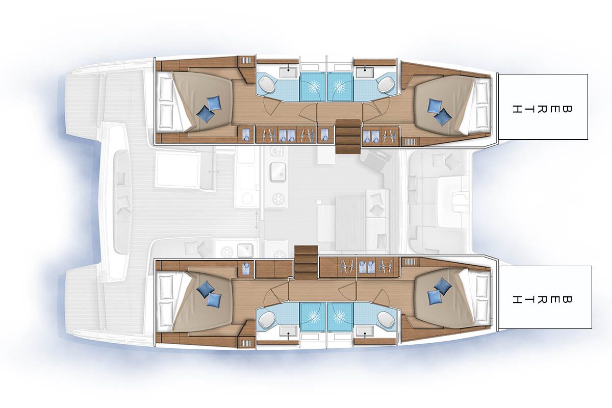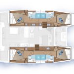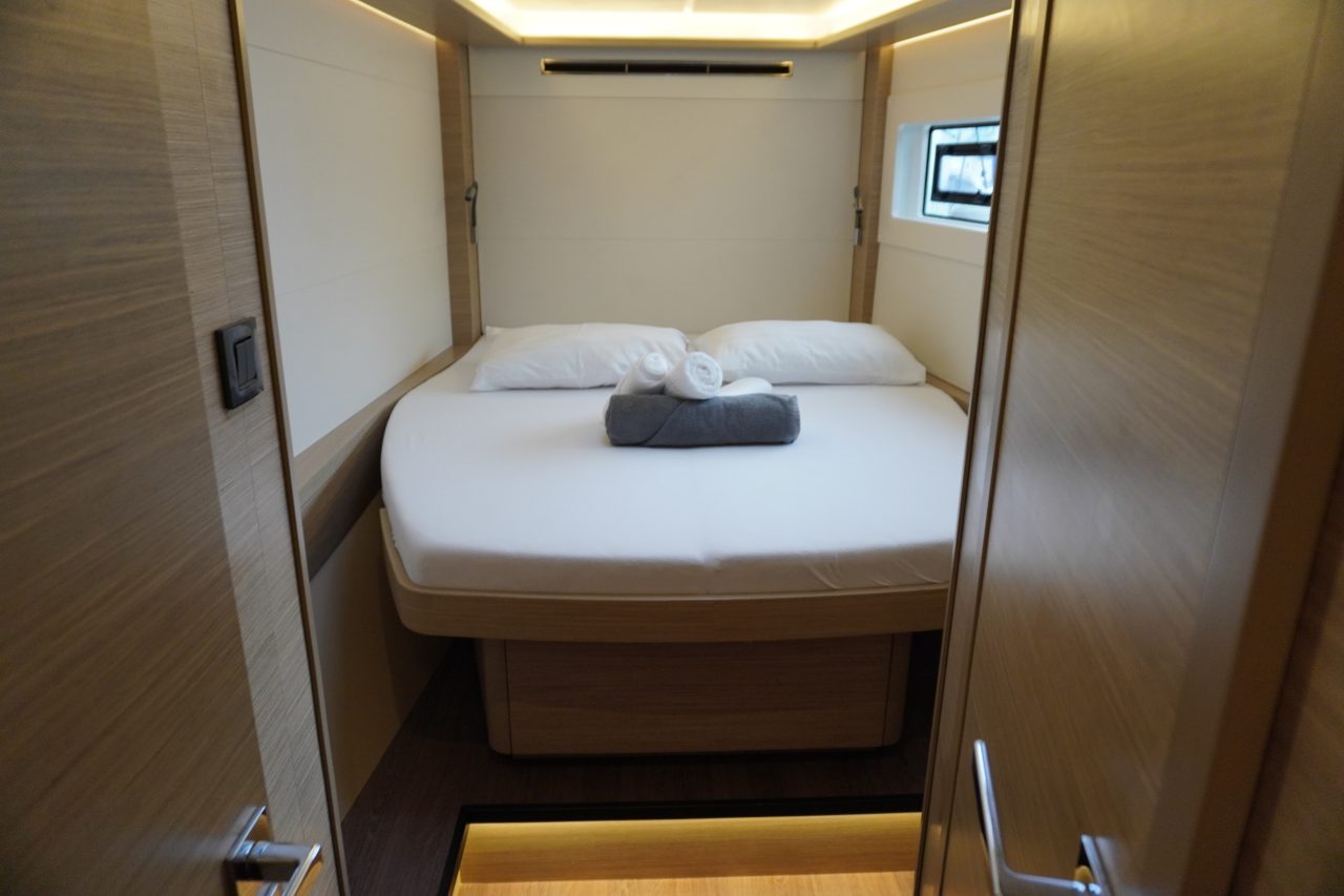 The flybridge provides great visibility and shelter, while the forward cockpit converts to a sunbathing area. Advanced rigging and lightweight construction ensure responsive, enjoyable sailing.