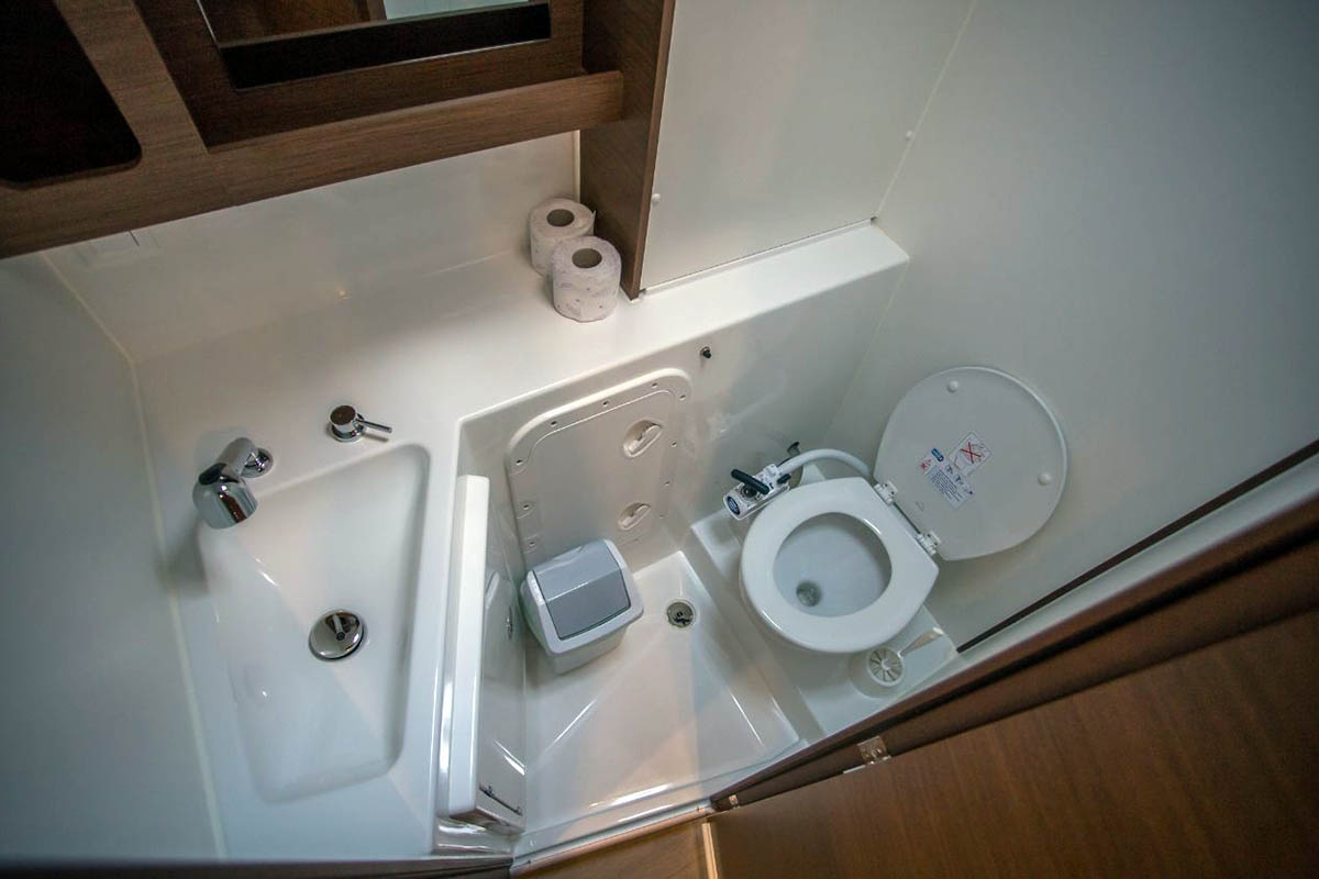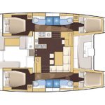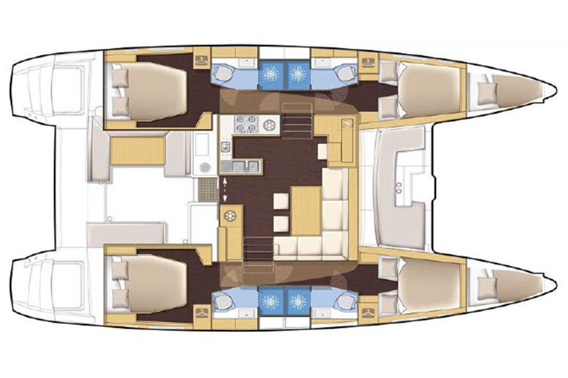 Offered in a four-cabin, four-head layout, the bright interior features a U-shaped salon settee, L-shaped galley, and sleeping accommodation for up to 12 guests.