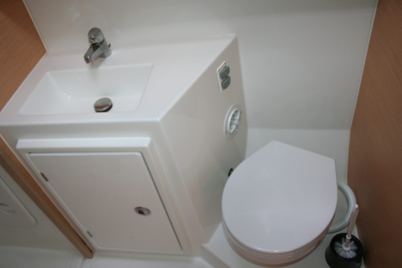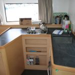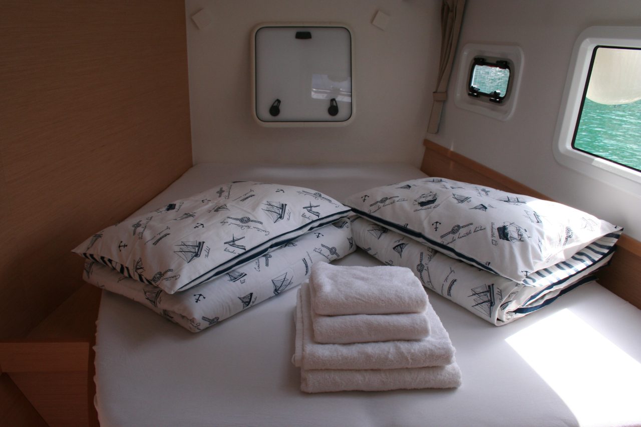 Offered in a four-cabin, four-head layout, the bright interior features a U-shaped salon settee, L-shaped galley, and sleeping accommodation for up to 12 guests, air-conditioning and webasto heating.