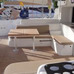 The flybridge provides great visibility and shelter, while the forward cockpit converts to a sunbathing area. Advanced rigging and lightweight construction ensure responsive, enjoyable sailing. Unique selling features include a large foldable teak table with cover, electric flush toilets, 4 under water spot lights, reverse cycle cruisair-conditioning 110v, Onan genset 110v, Water-maker 100 Litre 110v
