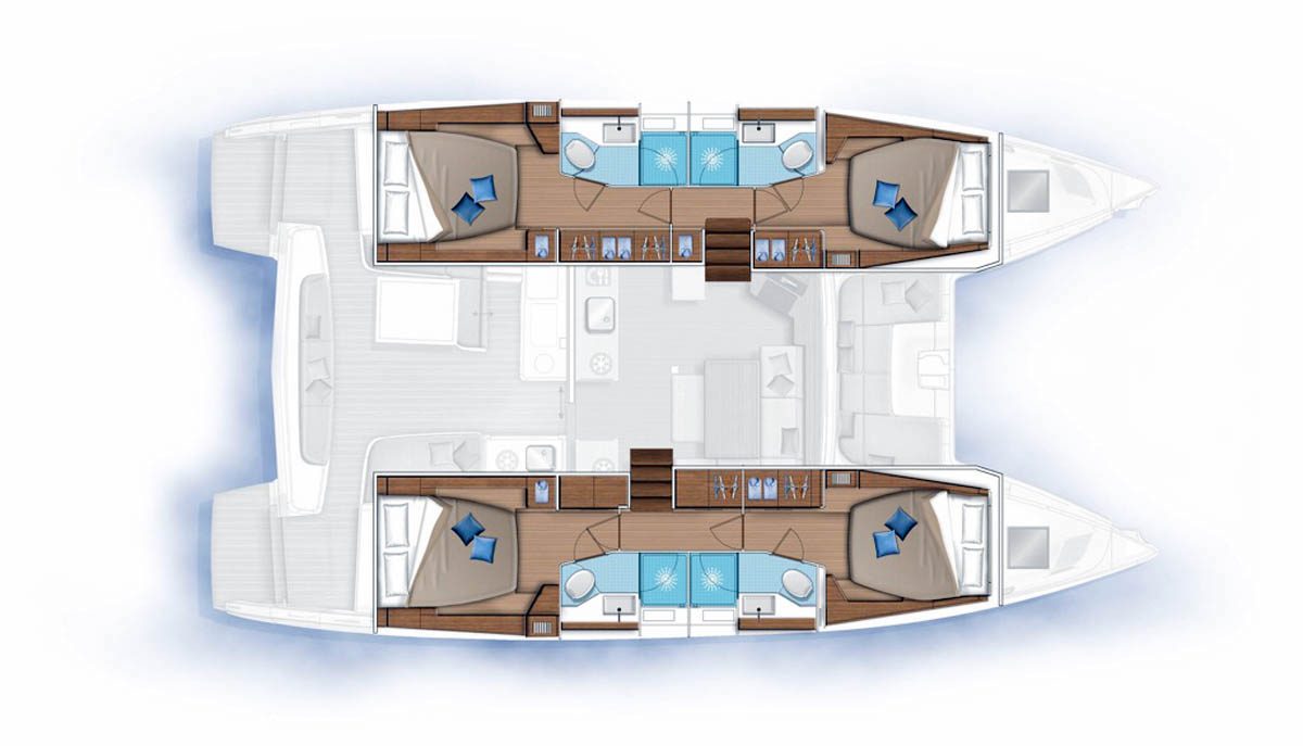 Well-maintained and ready for immediate purchase, this Lagoon 46 offers spacious cabins with en-suite heads, large windows, and excellent storage throughout.