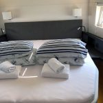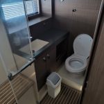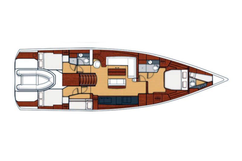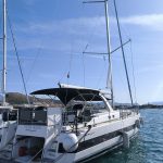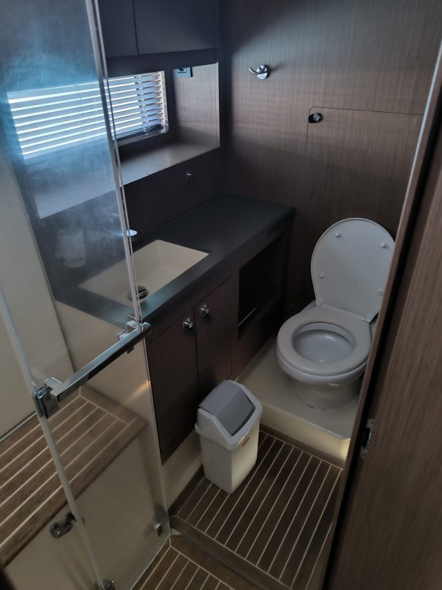 On deck, twin helms, generous seating, sunbathing areas, and an electric swim platform provide comfort and style. Powered by a reliable Yanmar engine, she delivers smooth, effortless sailing.