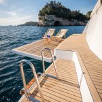Man diving from an anchored yacht in a Mediterranean bay